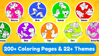 Coloring Book for Preschool and Kindergarten Kids is free to download educational game designed for children of age group 2 to 8 years. It contains 20+ different themes with more than 200+ coloring pages. This virtual Coloring and Drawing Book can help your child explore their creative side and have unlimited fun at the same time. It helps your child to develop hand-eye coordination and improve their motor skills. Kids can choose from various coloring pages from different categories like Animals, Birds, Vehicles, Underwater Animals, Toys, Dinosaurs, Unicorns etc. The app contains various drawing tools to choose from like pencil, crayon etc. It also contains an auto-fill tool designed especially for preschool kids to paint beautiful pictures with little effort. It contains more than 30+ bright colors. Children can also correct their mistakes with the undo button. They can even capture/save their artworks in the gallery. It also helps them learn to color within the outlines, thus improving their creativity. The app is perfect for kids of age 2 to 8 years. The app contains no advertisements and does not ask for any other information. It is extremely Kids Safe. Animals, Christmas & Halloween themes are free while other themes can be unlocked with a single in-app purchase. Once purchased, you will be eligible to obtain future updates and more coloring pages for free. We are always glad to receive your feedback and suggestions. Key features of our app : - Contains 20+ categories with more than 200+ beautiful coloring pages with more to come in further updates. - Perfect App for kids of age group 2 to 8 years. - Contains various tools and bright colors to choose from. - Contains Auto-fill option designed for preschool kids. - New Coloring Pages every week. - Easy to use. - No Annoying Ads. - Extremely Kids Safe.