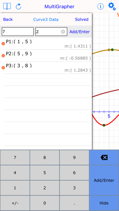 iMulti Grapher, is of the best graph applications available in the App Store, yet easy to use. it is handy tool essential for doctors, engineers, students and laboratories. Used to both derive the mathematical equation that fits a set or multiple sets of experimental data points, at any required degree, and plot them on graph, Also plot multiple mathematical equations on the same graph. It uses advanced polynomial Interpolation method to plot those data points and draw the derived equation’s curve, and uses advanced expression interpreter to plot the entered math equation’s curves. You can always manipulate the graph interactively (zooming in/out, scrolling and tracking). so you can determine the value of (y) for any given value of (x), plus the slope of the curve at that specific point. also you can get the precise numbers using a dedicated Solver UI. and now you can calculate & visualize area under curve for a given interval. you always can get the derived equations and numerical results in a formatted sheet that can be exported or shared. Minima, maxima & root points are also calculated and represented automatically. ► Features: - Easy expression entry form, with history. - Easy Data Points entry form. - Specialized numeric & function keyboards. - Controlling graph look & behavior. - Controlling properties of Pen, Text, Color for both curves & graph. - Automatic axes Scaling. - Zoom in/out, scrolling & Tracking. - Reset Graph, Origin. - Graph lock. - Customizable Degree of Interpolation with direct curve redraw. - Exportable calculations Sheet. - Interactively & numerically entered limits specification. - Solver & Solved points collection with auto re-calculation. - POI points collection with auto re-calculation. - Live Curve Slope tracking & calculations. - Precision Control. - Area under curve presentation & calculations, with interactive tagging. - Multiple curve handling & tracking. - Calculate the residual value for each point. - Calculate the correlation factor. - Importable Data Points. - Certified by EAS Organization.