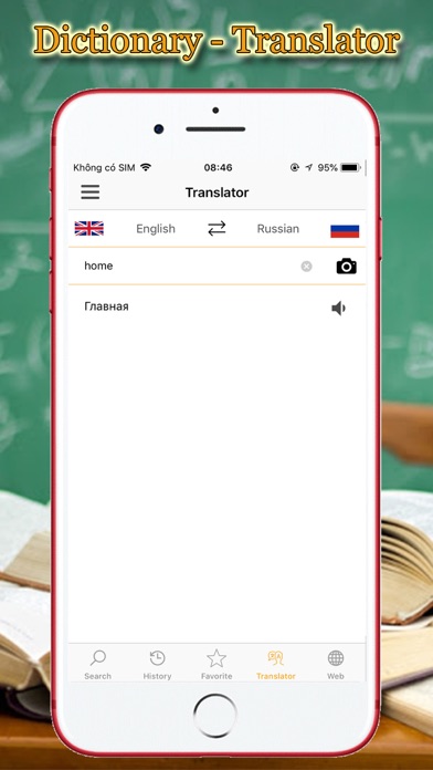 Russian English Bilingual Dictionary & Translator enables you to search Russian & English words with definitions, examples, pronunciation, and more. It covers over 100.000 words with easy and functional user interface. You can also learn Russian & English with Russian English Bilingual Dictionary & Translator. Features: • Russian English Dictionary offline. • English Russian Dictionary offline. • Voice search: you can also search by speak words or sentences. • High-speed search, related search suggestions. • You can search words, from which you can also listen to the pronunciation. • Russian, English pronunciation (Text-to-speech engine). • Auto save search history. • You can also add words to bookmark list. • Phrasebook: common daily conversations to learn Russian and English. • Translator: easily translate Russian to English or English to Russian with translator function. • Quick translator: you can also use translator function outside app, instead of opening app. Download Russian English Bilingual Dictionary & Translator now to have an useful dictionary app for you!