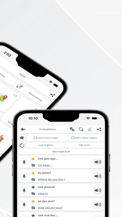Mëso anglisht tani me aplikacionin më të ri që ofron një udhëzim të qartë për të mësuar gjuhën angleze drejtpërsëdrejti nga gjuha shqipe. - Nëse pyet veten 'si të mesojm anglisht' ose ke kërkuar për 'albanian english' mësimet, kjo është zgjedhja e duhur për ty. - Aplikacioni jonë përfshin kurs anglisht, fjalor shqip-anglisht, gramatikë angleze dhe shumë më shumë. - Përshtatet për fillimtarë dhe për ata që dëshirojnë të përmirësojnë shkathtësitë e tyre. - Mëso fjalë të reja në anglisht, bëhu pjesë e sesioneve tona të bisedës në anglisht, dëgjo mësimet audio anglisht, dhe zhvillo aftësitë tënde me video mësimore anglisht dhe teste anglisht. - Për ata që dëshirojnë një mësim më të shpejtë dhe të lëhtë, provo opsionin tonë 'mso anglisht' me lojëra dhe praktikë të folurit anglisht. - Të gjithë, nga fëmijët te të rriturit, do të gjejnë diçka të vlefshme këtu - Mëso Anglishten është një aplikacion falas që ju lejon të mësoni anglisht shpejt dhe me efikasitet. - Praktikoni leximin, të folurit, të dëgjuarit dhe të shkruarit. Aplikacioni gjithashtu ofron aftësinë për të dëgjuar fjalinë me zë nga anglisht folesit. Mësoni fjalë nga të gjitha kategoritë themelore që ju nevojiten për të komunikuar lirshëm në çdo situatë ku ndodheni. - Alfabeti, numrat, ditët, muajt, stinët ... Mësoni shkronjat e alfabetit freng dhe si të shkruani numra në anglisht, ditët e javës, muajt dhe stinët ... - Fjali dhe biseda të ndryshme Aplikacioni përfshin përshëndetje të përditshme, komunikim me anëtarët e familjes në shtëpi, pyetje rreth ngrënies në kuzhinë dhe mënyrën se si të shprehni ndjenjat tuaja ndaj të dashurve. Komunikoni lirshëm me kolegët ose shefin. Fitoni aftësinë për të komunikuar me shokët e klasës dhe mësuesit në shkollë dhe të bëni pyetje në lidhje me mësimet. Kur udhëtoni, do të mësoni të pyesni për drejtimet dhe vendet që doni t'i vizitoni. Ju gjithashtu mund të gjeni fjali në lidhje me restorantin dhe hotelin, si të porosisni ushqim, ose të prenotoni një dhomë hoteli dhe të bëni pagesa. Ju do të mësoni se si të kërkoni ndihmë mjekësore kur shkoni në spital. Shprehje në lidhje me sportet, blerjet në dyqane dhe më shumë. - Gramatika Ju do të mësoni përdorimin e emrave, mbiemrave, ndajfoljeve, paskajoreve dhe shumë rregullave të tjera gramatikore në fjali nga shembujt e ndryshëm në aplikacion. - Praktikoni leximin Tregime të ndryshme të cilat mund t'i dëgjni nga frengjishtfolësit, të gjithë tregimin, apo secilen fjali ndaras, dhe të praktikoni të lexuarit. - Ilustrime me foto Një nga mënyrat më efektive për të mbajtur fjalët në mend është t'i mësoni ato nga figurat. Aplikacioni ju jep këtë mundësi ku mund të gjeni fjalë që ilustrohen me fotografi -Teste Testoni njohuritë tuaja nga lloje të ndryshme të testeve të ofruara nga aplikacioni si: P.sh. kombinimi i fjalëve me të njëjtin kuptim, gjetja e përgjigjes së saktë nga foto, përkthimi i fjalës ose fjalisë, dëgjimi i fjalisë dhe më pas shkrimi i saj, shqiptimi i fjalisë që shfaqet dhe të tjera. - Sfidoni miqtë Krijoni një sfidë dhe dërgoni ID-në e mikut tuaj që ai do ta përdorë për t'ju gjetur dhe për t'u lidhur me ju. Krijoni kuize me pyetje dhe përgjigje brenda sfidave dhe sfidoni njëri-tjetrin ose komunikoni me njëri-tjetrin në grupe. -Disa nga kategoritë që mund të gjeni në aplikacion janë: - Alfabeti, - Gramatika, - Numrat, - Fjalë dhe fjali të përditshme, - Ditët e javës, muajt, stinët, - Në shtëpi, - Në punë, - Në udhëtim, - Në restorant, - Spital, - Në dyqan, - Për sportin, - Ndjenjat, - Biseda të ndryshme dhe të tjera.