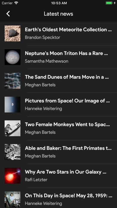 Features: - Daily NASA pictures: using the NASA APOD services. - SpaceX launch tracker: this project includes the entire SpaceX GO! experience. - Latest space news: be up-to-date with all space-related recent highlights. - ISS tracker: know exactly when and where the biggest floating space laboratory will be in each moment. - Weight calculator: have you ever wondered about how much would you weight in other worlds?