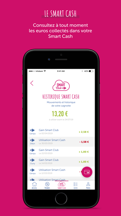 Avec cette appli, c’est le meilleur de Carrefour Martinique qui vous suit toute la journée! Retrouvez à portée de main toutes les promotions du moment, l’actualité de votre magasin préféré et les offres exclusives du SMART Club. Promos : Téléchargez et consultez en avant-première les bons plans dans vos catalogues directement depuis votre smartphone. SMART Club : Adhérez facilement au programme SMART Club en renseignant vos données personnelles. Obtenez votre carte virtuelle directement sur votre téléphone afin de profiter d’un maximum d’avantages toute l’année ! Découvrez chaque semaine les smart deals exclusivement dédiées aux membres du SMART Club. Ils vous permettront de cumuler du smart cash dans votre cagnotte et de gagner en pouvoir d’achat. Liste de course : N’oubliez ni le lait en promo ni le café ! Votre application Carrefour Martinique s’en souvient pour vous… Créez, modifiez, partagez votre liste de course avec vos proches. Une fois en magasin, cochez les produits au fil de vos achats. Et ce n’est pas tout ! Une question ? une idée ? Contactez à tout moment notre service client ! Nous restons à votre écoute et nous nous faisons un plaisir de répondre à toutes vos suggestions. Retrouvez aussi les adresses, horaires et numéros de téléphone de vos magasins Carrefour Martinique. Avec l’application Carrefour Martinique, choisissez de faire des économies !
