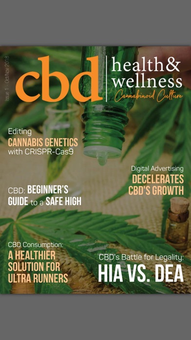 CBD Health and Wellness is a brand-new magazine focusing exclusively on the sale, production, and research of CBD and other Cannabinoids. Drawing on experts from around the world, CBD Health and Wellness hopes to connect readers with qualified and accurate sources of information. We will find the hard facts surrounding CBD, describe the current state of the CBD market and research, and help cultivate the industry’s rise over the years to come. Our magazine is distributed to every laboratory and extraction facility from the United States to Israel and everywhere in between. We also post daily content on our blog that reaches an even wider spectrum of viewers keeping them educated on the latest in business, science, and news related to the CBD industry. We’re excited to stand alone in this publishing space as the only print magazine reporting on this crucial space in the legal cannabis market. CBD Health Wellness Magazine offers the following auto-renewable subscriptions: - Yearly Subscription ($17.99) Payment will be charged to your Account at confirmation of purchase. Subscription automatically renews unless auto-renew is turned off at least 24-hours before the end of the current period. Account will be charged for renewal within 24-hours prior to the end of the current period, and identify the cost of the renewal. Subscriptions may be managed by you and auto-renewal may be turned off by going to your user's Account Settings after purchase. No cancellation of the current subscription is allowed during active subscription period. Any unused portion of a free trial period, if offered, will be forfeited when you purchase a subscription to CBD Health Wellness Magazine. For more information please see our privacy policy at http://www.magloft.com/publications/6411/privacy and our terms of use at http://www.magloft.com/publications/6411/terms.