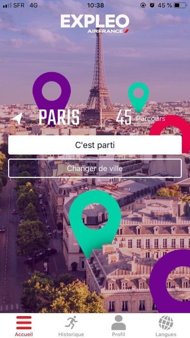 Vous souhaitez visiter la ville dans laquelle vous vous trouvez avec confort et simplicité ? Vous voulez connaitre les faits uniques et les anecdotes originales de cette ville ? Vos amis sont partants pour une petite balade dominicale, et vous préférez allier découverte de la ville à votre séance de course à pied ? L’application Expleo est faite pour vous. Expleo vous permet de découvrir les points d’intérêts incontournables et d’autres plus originaux, ainsi que les anecdotes uniques d’une ville, en marchant ou en courant. Téléchargez l’application, attrapez vos écouteurs, choisissez parmi les parcours proposés réalisables en marchant ou en courant … et suivez l’audioguide ! Non seulement Expleo vous guidera tout au long du parcours, mais surtout, Expleo vous prodiguera automatiquement une visite guidée de la ville, au passage des points d’intérêts sur votre chemin. Expleo est aujourd’hui disponible dans 10 villes en France et en Europe, ainsi qu’à New York City ! Voyageur d’affaires, explorateur du monde ou local curieux de redécouvrir sa ville : vous trouverez tous dans Expleo un véritable intérêt culturel et sportif ! Plusieurs types de parcours sont disponibles : balade pour la visite, running pour allier sport et découverte, ou « running+ » pour ceux qui cherche davantage à s’entrainer. Les parcours font entre 3km et 15km, et couvrent différents quartiers des villes : à vous de choisir ! Expleo vous fournit également les statistiques de déplacement sur vos parcours réalisés (temps écoulé, distance, vitesse, dénivelé, calories brûlées). Vous pouvez pré-charger les parcours si vous ne souhaitez pas utiliser vos données mobiles pendant la balade ou la course, notamment à l’étranger. La position GPS ne consomme, quant à elle, aucune donnée de connexion internet. *Cette application vous permet d'intégrer vos données dans l'application Apple Santé *L’utilisation continue du GPS en arrière-plan peut considérablement réduire l’autonomie de votre batterie.