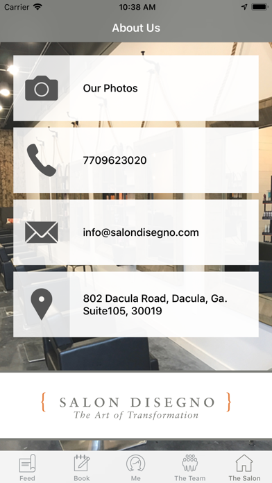 Salon Disegno provides a great customer experience for it’s clients with this simple and interactive app, helping them feel beautiful and look Great. App Features * Book an appointment 24/7 * Meet our team * Keep a record of your service history * Reap the benefits of our loyalty program * Get exclusive special offers * View Our Gallery * Get Directions And More