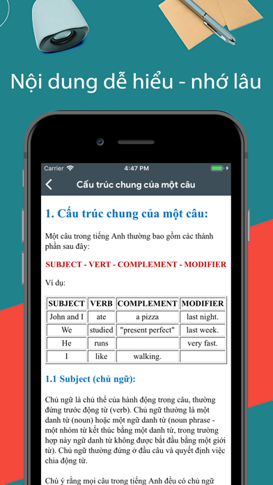 - Rèn luyện ngữ pháp thường xuyên là việc vô cùng cần thiết với những người muốn vận dụng tiếng anh vào cuộc sống. - Ứng dụng ra đời với mục tiêu giúp cho bạn có một kho bài tập về ngữ pháp để luyện tập thường xuyên. - Ứng dụng được sắp xếp giúp cho người dùng có một trải nghiệm tốt nhất. - Phân loại các mục dễ hiểu, dễ nhớ, giúp bạn dễ dàng học tập và ôn luyện ngữ pháp Tiếng Anh. **** Chức Năng Chính **** - Danh mục bài học được thiết kế khoa học và chất lượng. - Các câu hỏi ngữ pháp tiếng anh được chọn lọc kỹ lưỡng. - Hỗ trợ mọi thiết bị iOS. - Hỗ trợ học tập khi không có 3G hoặc wifi. Sự thành công của bạn là niềm vui của chúng tôi!!! Lam bai tap tieng anh - Lam bai tap ngu phap tieng anh - bai tap ngu phap tieng anh -bai tap tieng anh - ngu phap test - grammar test - grammars test Mọi thông tin vui lòng liên hệ với chúng tôi qua địa chỉ mail: [email protected]