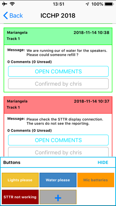 Being a technician during a conference means, you have to be at thousand places at once. You would like to keep all at sight and want to be everywhere and with each of your guests to react in the moment they need your help, specially with a smaller team of technicians that’s a challenging task. Technicians run from place to place and check if all is still alright, and usually it is. But, wouldn’t it be much more relaxing to get in touch with your guests right away when they encounter a problem ? Of course, you can agree on signs or provide them with walkie-talkies. That might require to stop a service like translations, interpreting or a presentation to let you know that something isn’t working as it should. This means, you will get to know about problems only in worse cases or not at all. CallTec allows your guests to notify you with a simple press of a button, your presenters don’t need to stop their talks while they let you know that the volume is to quiet and when your language translator needs new headphones, he doesn’t need to leave his booth. CallTec offers you a easy interface for users and technicians on your mobile phone. For a stationary setup, it allows your technicians to connect from a web browser as well. Set up your clients quickly, using a QR code and you are ready for your event in a blink of an eye. Features --------- CallTec provides an interface between service providers and the technicians team With the installed application on at least two mobile devices the technician will receive information, alerts and requests on one phone, while the service provider uses the other to send them. The communication requires no interruption of ongoing services Potential information or requests are pre-configured by the technician in a button. The interface offers a one tab button for each so they can be pushed without further intervention. No limitations in amount of technicians or service provider devices You can connect as many mobile devices as you need. Each service provider and each technician can use his own device during the event. Individual event-dependant configuration Technicians can configure for each event a set of buttons. Not only can you change the captions and related messages but also the colors and priority levels for each. You need no extra infrastructure The application relates on internet communication. You have not to set up any server or special network infrastructure. Make sure your device is having access to internet (by mobile data connection or wifi network) and you are set. No following costs Once you have purchased the application for your devices, you can use it for as much events as you want and as long as you need. Each Device needs its own application installed. Volume licenses and team discounts are available at the corresponding stores. Easy setup of a new event Each technician can start a new event only by naming it and providing a pin. Since a technician has started a new event, other technicians and service providers can connect to the same event. Quick setup of users devices Technicians can simplify the login and joining to an event for the service providers by setting up QR code labels with all necessary information included. A single scan of the settings and you are ready to go.