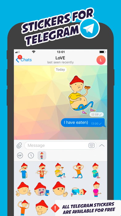 Hi there, we are developed a new character DUDEmaan, he is a charismatic, funny and very emotional dude! Download this application you can share stickers in all messengers, and also officially add this pack to iMessage, install the keyboard and use them in WhatsApp and Telegram!