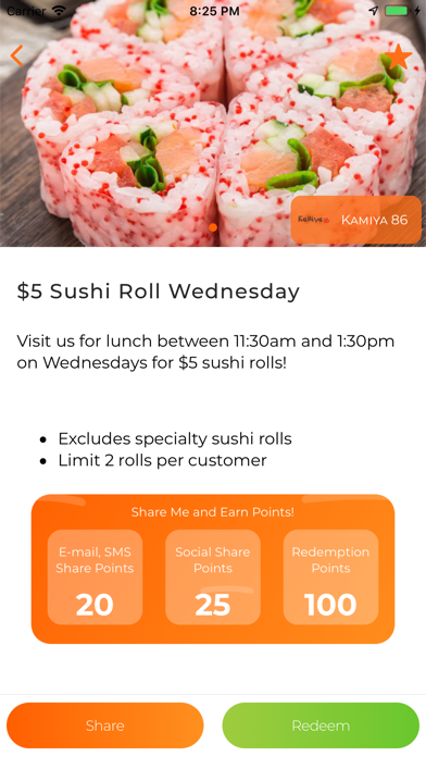 Your mobile companion for finding and joining the KARROT rewards programs for small businesses near you! Not only can you get great every-day deals from these businesses, but you also earn reward points by sharing their deals! With Karrot you can, - Find local businesses that are in the Karrot network and immediately participate in their rewards programs, 100% free! - Earn reward points by redeeming offers and/or sharing them. - Earn reward points for leaving reviews. - When your friends redeem offers you've shared, you earn even more points! - Shop business rewards catalogs with your accumulated rewards points.
