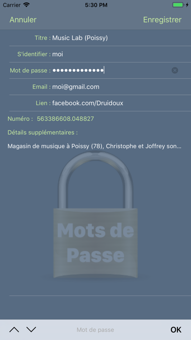 Vous avez de nombreux mots de passe à retenir et vous devez les noter sur un carnet ou dans votre bloc note pour vous en souvenir ? Vos mots de passes doivent être sécurisés pour ne pas être utilisés par des logiciels espions. Afin de répondre à cette problématique grandissante, nous avons conçu une application simple mais très efficace qui crypte automatiquement et directement vos mots de passe dans l'application avec une clé généra aléatoirement par l'application elle-même. En un clic vous verrouillerez l'application et vos données sont toujours disponible sur votre téléphone. L'application est protégé par un mot de passe ou par déverrouillage avec TouchID ou FaceID selon la version de votre iPhone ou de votre iPad. Nous ne téléchargeons ni sauvegardons aucune de vos données. Elles seront toutes sauvegardées dans votre téléphone, en lieu sûr, dans une application cryptée. Des notifications vous seront envoyés hebdomadairement pour vous signaler les items avec des mots de passes non sécurisés. Nous serons ravi de recevoir vos commentaires afin d'améliorer cette application. N'hésitez pas à nous transmettre vos remarques pour ajouter de nouvelles fonctionnalités.