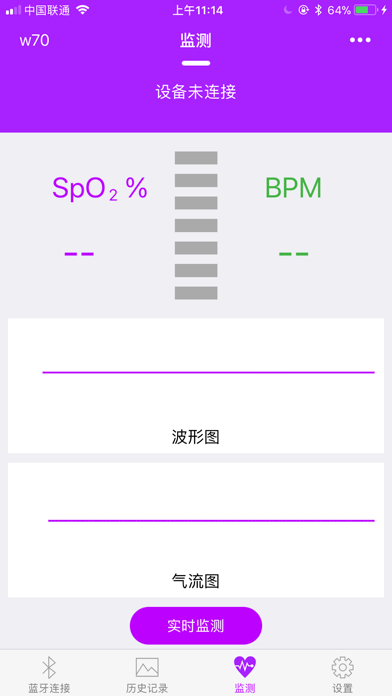 本款APP软件专为管理睡眠呼吸监测手表无创检测到成人及儿童(大于30公斤)的血氧饱和度值和脉率值。 睡眠呼吸监测手表专为夜间监测血氧而设计,可实时监测打呼噜时人体血氧下降的程度,可自我评估睡眠质量。 手机端安装了本款APP软件后,通过蓝牙搜索,来搜索有效距离内睡眠呼吸监测手表发出的蓝牙信号,实现手机端与睡眠呼吸监测手表的数据互联,从而达到了从手机端下快速显示并测量人体的血氧饱和度值和脉率值,便捷管理睡眠呼吸监测手表的各项功能。