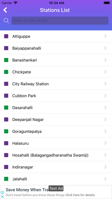 BMRCL Bengaluru Metro app is beautifully designed mobile app to make the transportation easy. Enter Source and Destination Station and find basic detail of the route like distance, fare, journey duration, number of stations, and interchange if any. Finding Bangalore metro route and timing is now so easy to find. Eg.,- Yelachenahalli to Majestic Metro Timings Key features includes: » Shows route and timing between two stations with information like total journey kilometers, fare, journey durations, total stations and changes if any between purple and green line. » Stations: Scroll through Bangalore Metro Station List and know on which line (purple or green) it is located » Find nearest station: Know detailed information about station (address, line, where parking available or not and the nearest station distance from your location). You can even view station and distance on Map. » BMRCL Metro Map: Metro Purple line map and metro Green Line map with interchange, station marker and terminal station marker is beautifully shown here in the app. » Fare Chart: Refer to know Bangalore Metro fare chart between two stations. This is not an official mobile app of Bangalore Metro Rail Corporation Limited (BMRCL). For more details on BMRCL, visit - http://english.bmrc.co.in