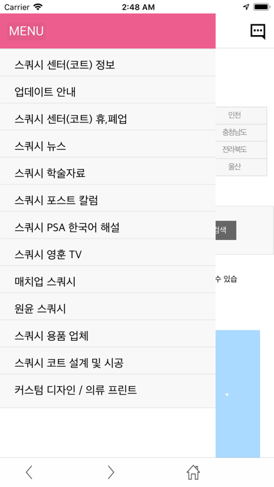스쿼시 센터(코트) 안내와 스쿼시 정보를 제공하는 서비스입니다. - 위치 정보를 통한 현 위치와 스쿼시 센터 위치를 확인할 수 있습니다. - 푸시 메시지를 통한 새로운 소식을 전합니다. - 문의 및 제보 메뉴를 통해 제보하실 수 있습니다. - 스쿼시 센터(코트) 안내 - 업데이트 안내 및 휴, 폐업 정보 - 스쿼시 정보 및 뉴스, 칼럼 등 스쿼시 관련 다양한 컨텐츠