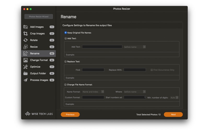 Photos Resizer is a lightweight app to resize images in a batch. The application has been made like a wizard where you can apply several editing functions to a batch of images. You can skip the functions that you do not wish to perform on the selected photos. The available options are Crop Images, Rotate Images, Resize Images, Rename Images, Change format and Optimize selective images. You can perform multiple operations on the batch of images in order. Features of Photos Resizer: • New, Streamlined, Super Fast, Responsive and easy to use User Interface • Easy and fast, drag and drop images or folders with images or Photos Library onto the main window, review and start processing. • Crop images to a custom size you need. • Rotate images or change their orientation. Flip them horizontally or vertically. • Resize images from as little as 1px up to 10000px without loss of quality. • Batch Rename the processed images. • You can even change the format of the original images to any other format of your choice. • Supports Image and thumbnail caching, image asynchronous loading. Why do one need to resize images on Mac? There are many reasons to resize pictures or photos on a Mac. This may be to make them better fit into a document or email, or to used resized images on webpages or they can be used to be set as a wallpaper on your desktop, or for many other purposes. Additionally, resizing an image can be useful to reduce the file size of an image as well as a smaller resolution tends to have a smaller file size. Whatever the purpose of resizing, Photos Resizer provides you the fastest way to resize a single photo or a batch of photos on your Mac. How does Photos Resizer works? 1. Add Images to Photos Resizer by simply dragging Photos Library, images or folders with images on the main Window. 2. The added Images are presented to be reviewed before proceeding to editing. 3. The next step is to Crop Images. If you do not want to apply Crop settings, you simply need to keep "Skip this Step" checked and proceed to next step using the "Next Button". "Skip this Step" is available on each step and should be unchecked to apply settings from that step. 4. You can select the Crop rectangle or use a pre-specified dimension to apply Crop setting. Once done, you just need to click the blue tick button to apply the selected settings on all the selected images. 5. If you are not happy with the crop settings, you can Reset the settings using the "Cross" button and the images will be reverted on the fly. 6. You can now move to the next step - Rotate where you can rotate the selected images. If you have applied the Crop settings, the images will first be cropped and then the Rotate settings will be applied. 7. After the rotate settings are applied (or the step is skipped), you can move to the next step where you can Resize the selected images. 8. After applying the resizing settings, you can proceed to next step of Renaming the selected images a per your preference to be processed and saved in new names. 9. In the Next step you can change the Output format of the images and can selected from various common formats. 10. If you have selected JPEG format in the previous step, you can optimize the images in the next step. 11. The next step allows you to select the Output folder where the processed images will be saved. You can even save the images to their source location. 12. Once you set the output folder, you can start the batch processing to process the images as per the settings selected on each step and saved to the specified output folder. 13 A summary of the settings applied will be presented after all the images are processed and saved. Photos Resizer is impressively full featured for resizing, rotating, cropping or renaming batch of images. However, It does not supports Touch bar. You may visit our blog http://blogs.wisetechlabs.com to remain updated about latest tech updates. Cheers!