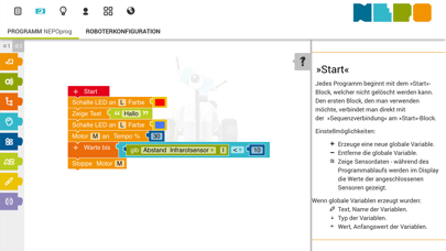 Im Open Roberta® Lab erweckt Ihr Eure Roboter und Mikrocontroller mit der grafischen Programmiersprache NEPO® zum Leben. Per drag and drop erstellt Ihr schnell und spielerisch Programme für unterschiedliche Systeme. Mithilfe der »Open Roberta mobile«-App könnt Ihr NEPO-Programme für den LEGO Education WeDo 2.0 drahtlos via Bluetooth übertragen – egal, ob auf dem iPhone oder dem iPad. Open Roberta kommt mit vielen Extras • Eine Programmiersprache für viele Roboter • Galerie zum Teilen von Programmen • Live-Hilfestellungen für den schnellen Einstieg ins Coden • Quellcode-Ansicht • Unterschiedliche Sprachen für User weltweit • uvm.