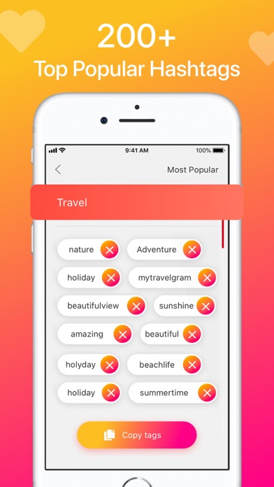 Get the best hashtags easily, collect more Likes and followers on your Instagram account. Pro Hot Hashtags for Instagram is an app which uses artificial intelligence to automatically generate hashtags for your Instagram pictures. The app also features the best selection of top hashtags and a selection of theme-based hashtags. You can create your own hashtag sets, save them, and edit them. Want to pump your account in Instagram? We publish articles with recommendations on the design and promotion of your account. Also in the application, we show you the most popular photos and the most popular hashtags at the moment. It has never been easier to use hashtags and promote your Instagram account. Pro Hot Hashtags for Instagram features: - Automatic generation of suitable hashtags - Sets of the 200 top hashtags - Theme-based hashtag choices - Ability to create your own hashtag sets - Popular today photos - Popular hashtags at the moment - Articles with tips to promote your account in Instagram FULL SUBSCRIPTION DETAILS: Subscribe to Pro Hot Hashtags for Instagram monthly plan or save with our yearly plan. Monthly plan options: $6.99 per month. Year plan option: $39.99 per year. - You can cancel anytime during the trial period – there is no cancellation fee. - Payment will be charged to iTunes Account at confirmation of purchase. - You can use the subscription on any device. - Subscription automatically renews unless auto-renew is turned off at least 24-hours before the end of the current period. - The account will be charged for renewal within 24-hours prior to the end of the current period, and identify the cost of the renewal. - Subscriptions may be managed by the user and automatic renewal may be turned off by going to the user's Apple ID Settings after purchase - Any unused portion of a free trial period, if offered, will be forfeited when the user purchases a subscription to that publication, where applicable Privacy Policy: https://www.prohothashtags.com/privacy.html Terms & Conditions: https://www.prohothashtags.com/terms.html