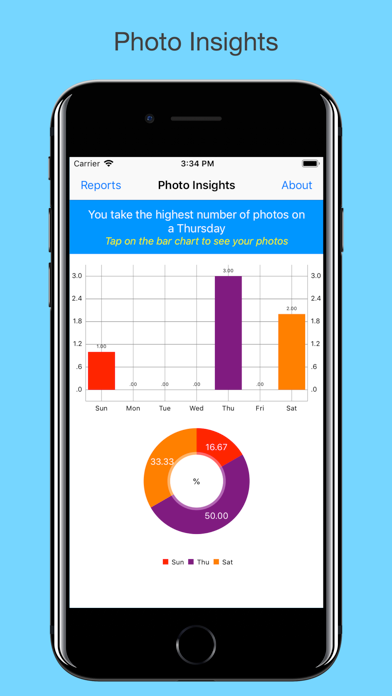 Photo Insights gives you everything you every need to know about your photo library. Learn about when and how you take your photos. View by time, day, month, year, orientation, mornings, afternoons, weekends and more! Fast, simple and easy to use - all information presented in stunning charts. What else would you like Photo Insights to tell you about your photo library? Send feedback today. From the team at James Kent Software, we hope you enjoy Photo Insights.