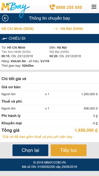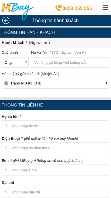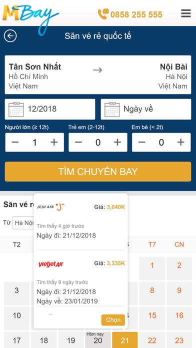 Ứng dụng đặt vé máy bay trên điện thoại, một ứng dụng miễn phí cho khách hàng sử dụng điện thoại di động đã và đang được Mbay.com.vn phát triển, với tính năng vượt bậc, đặt vé nhanh chóng và tiện lợi, giao diện thân thiện dễ sử dụng giúp khách hàng dễ dàng tìm kiếm được những thông tin cần thiết, giúp ích cho việc tìm hiểu thông tin lịch trình cho những chuyến bay. Mbay.com.vn là một trong những website hàng đầu về đặt chỗ, book vé máy bay trực tuyến của tất cả các hãng hàng không trên thế giới. Với công nghệ tiên tiến và độc đáo bạn có thể dễ dàng săn vé giá rẻ, tìm kiếm chuyến bay, đặt vé máy bay nội địa và quốc tế, so sánh giá vé giữa các hãng mà không phải mất nhiều thời gian tìm kiếm trên hàng chục website khác nhau. Với những nỗ lực không ngừng nghỉ, mong muốn quý khách có những trải nghiệm tuyệt vời xuyên suốt hành trình của mình, Mbay.com.vn đã hợp tác với các hãng hàng không uy tín như : Vietnam Airlines, Singapore Airlines, Thai Airways, Cathay Pacific, China Airlines, Korean Air, Japan Airlines, Etihad Airways, Air France, Emirates Airlines, American Airlines … cùng rất nhiều hãng hàng không giá rẻ khác VietJet, Jetstar, BambooAirways... đem lại một mạng lưới chuyến bay toàn diện đi Châu Âu, Châu Mỹ, Châu Úc, Châu Phi và tới những điểm đến của Châu Á. Mbay.com.vn cam kết mang lại cho khách hàng những giá trị cốt lõi, chất lượng hoàn hảo, sự thoải mái nhất từ dịch vụ của chúng tôi ! Trụ sở chính: Số 8/116 Nhân Hòa, Phường Nhân Chính, Quận Thanh Xuân, TP. Hà Nội 024) 7301 0899 - Hotline: 0858 255 555 * Thứ 2 - Thứ 6: 8:00 - 17:30 - T7: 8:00 - 12:00 VP HỒ CHÍ MINH: Lầu trệt tòa nhà Tuấn Minh, Số 21 Huỳnh Tịnh Của, Phường 8, Quận 3, TP. Hồ Chí Minh (024) 7301 0899 - Hotline: 0858 255 555 * Thứ 2 - Thứ 6: 8:00 - 17:30 - T7: 8:00 - 12:00 Email: [email protected]