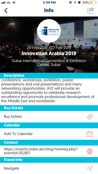 Introducing Mobile App for Innovation Arabia, which is useful for exhibitors, visitors, speakers & corporate partners. This app content gives updated information before, during and after the event. Innovation Arabia App consists of a comprehensive set of services as below. . General Information . News & Social Media Feeds . Venue Information . Contact Information . Exhibitor Catalogue . Interactive Floor Plan . Sessions (Agenda) . Speakers & Bio's . Attendees Information Stay with us for more & updated information about our event.