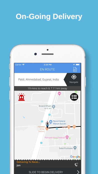 By using this application the delivery drivers of this application gets the delivery request from users/senders. With just one tap, delivery driver can get nearest delivery job request. Work Flow: 1) Choose your delivery vehicle and be online/on duty to receive delivery request 2) Accept the delivery request and go to pickup the items 3) Start the delivery once items are picked up 4) End the delivery, once you reach to destination 5) Invoice/Receipt generated 6) Collect cash from recipient