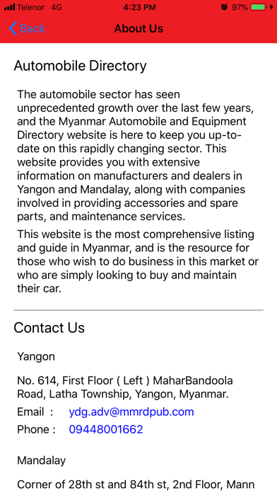 THE MYANMAR AUTOMOBILE INDUSTRY GUIDE The automobile sector has seen unprecedented growth over the last few years, and the Myanmar Automobile & Equipment Directory website is here to keep you up-to- date on this rapidly changing sector. This website provides you with extensive information on manufacturers and dealers in Yangon and Mandalay, along with companies involved in providing accessories and spare parts, and maintenance services. This website is the most comprehensive listing and guide in Myanmar, and is the resource for those who wish to do business in this market or who are simply looking to buy and maintain their car.