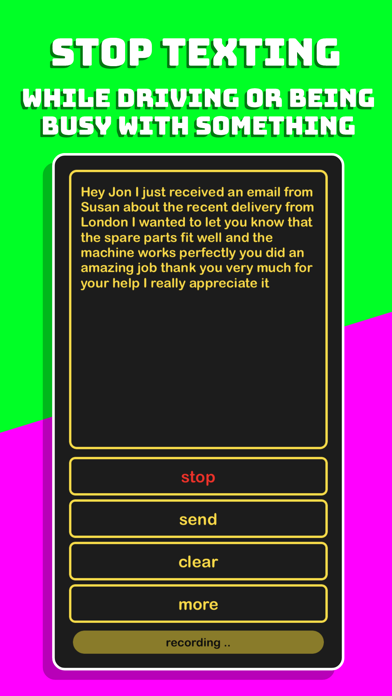 The app can convert your speech to text. You can use it for taking notes, long emails, text messages and etc. On average, a person types 50-60 words per minute on a mobile device. Using the app increases the output to 150-180 words per minute (3x faster than typing). Increase your productivity and stay on track with your tasks. The technology gives us the perfect opportunity to enhance our speed and performance. The advanced technology makes it easy and comfortable to speak instead of typing something. In addition, the thoughts run smoothly without having to slow down while being unable to catch up with typing. Do not get distracted while driving or being busy with something important. Just dictate and the app will write down everything for you. The app gives you the possibility to save time and effort, in order to focus your attention on the important things in life. External noise could have an effect on the quality of the conversion.