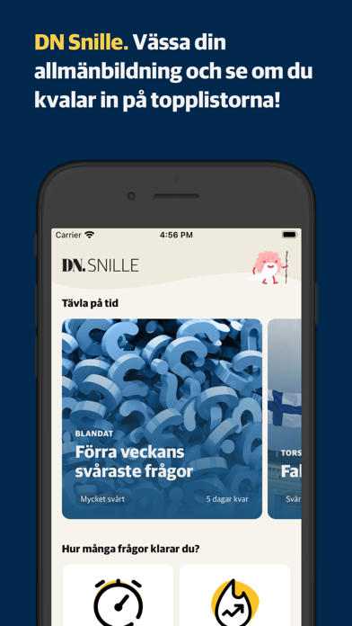 DN Snille är en kunskapsapp framtagen av Dagens Nyheter. Dagens Nyheter bevakar och belyser inom politik, kultur, näringsliv, sport och ekonomi. I intervjuer, essäer och i krönikeform berättar vi om dagens mest intressanta personer och angelägna tendenser. Du tar del av de avgörande historierna om vår tid och blir uppdaterad om de senaste nyheterna. Du kan sedan tidigare ta del av Dagens Nyheter via våra appar DN och E-DN. Nu utökar vi utbudet med att erbjuda en kunskapsapp via DN Snille. För att använda DN Snille måste du vara DN-prenumerant och du loggar in med din vanliga DN-inloggning.