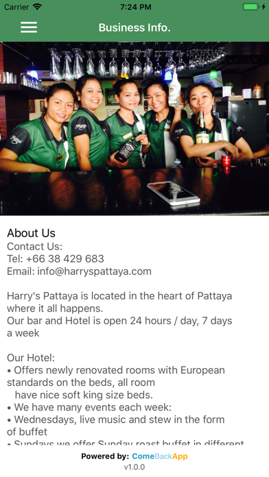 Hi Friends! Install and login to the Harry's Pattaya App to receive special offers, loyalty rewards as well as in app ordering and more! And please do write our app a review if you like it! Thanks and hope to see you soon! Powered by ComeBack App! www.comebackapp.net