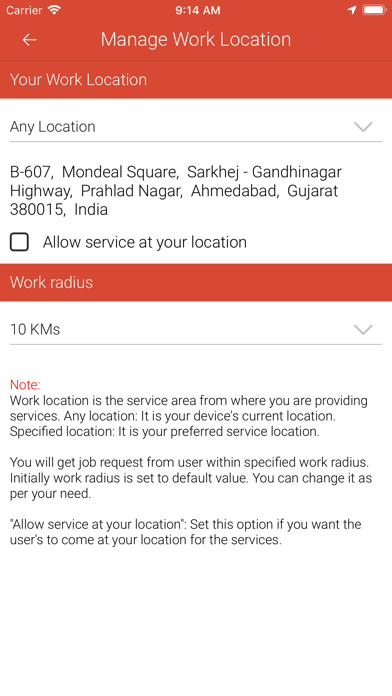 Application for service providers/professionals like Beautician, car washer, electrician, plumber etc... which let them manage the on demand service request for now or later time. Work Flow: 1) Choose the appropriate services that you are going to provide 2) Becomes online/on duty to accepts the job/service request 3) Accepts the request and go to user's location 4) Start the job once reached to user's location 5) End the job once job is completed 6) Invoice/Receipt generated 7) Rate the User and complete the job
