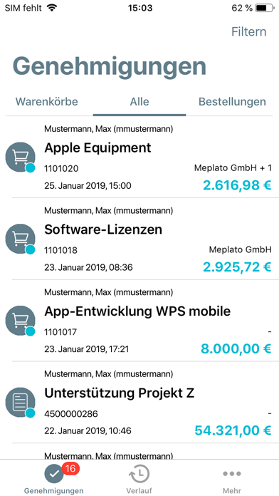 WPS mobile ermöglicht es Ihnen ihre Warenkörbe und Bestelländerungen überall auf der Welt zu genehmigen. Erhalten Sie Push-Benachrichtigungen für jede neue Genehmigung und sehen Sie sich Details zum Objekt auf Kopf- und Positionsebene an. WPS mobile gibt Ihnen zum Genehmigen Zugriff auf alle Dokumente und sonstigen Informationen, die einem Warenkorb oder einer Bestelländerung beigefügt sind und zeigt Ihnen sogar die Genehmigerliste an. WPS mobile lässt Sie Genehmiger hinzufügen, Warenkörbe oder Bestelländerungen ablehnen oder bewilligen. Besteht Klärungsbedarf können Sie das Objekt sogar zurück zum Besteller senden. Für eine einfachere Nutzung können Sie Standardtexte hinterlegen. NEUERUNGEN Look & Feel - Neues Farbkonzept - Neues App-Icon - Einführung einer Dashboard-Ansicht als neue Ebene zwischen Übersicht und Details Neues Swipe-Konzept - Wechsel zwischen den Übersichten (Warenkörbe, Alle, Bestellungen) - zwischen den Dashboards - im Objekt zwischen Kopf-Details, Positionsübersicht und Historie - in den Positionensdetails zwischen den Positionen App Kopplung - Vereinfachte Kopplung (API basiert) - Anlernen weiterer Mandanten verwendet nun auch den Anlern-Dialog - Prüfung auf Internet Verfügbarkeit vor Start der Kopplung Erweiterungen in der Positionsübersicht - Kennzeichnung genehmigungsrelevanter Positionen - Darstellung von Bundle Positionen - stornierte Positionen markieren - in der Positionsliste werden nun neben dem Lieferdatum auch Zeiträume angezeigt Erweiterungen in den Detailansichten - Anzeige der Mehrfachkontierung in den Positionsdetails - Kosten- und Wareneingangsverteilung werden nun lokalisiert - Steuersätze werden in Prozent angezeigt - Darstellung lesbarer Boolean Werte - Anzeige von kundenspezifischen Feldern (AdditionalData) Optimierung der Anzeige von Änderungen - diverse Korrekturen in der Änderungsauswertung - Änderungen werden nun auch für Kopfdetails von Warenkörben und Bestellungen angezeigt - Feldänderungen, die direkt vor der Genehmigung durchgeführt wurden, werden direkt am jeweiligen Feld in der Detailansicht dargestellt - die gesamte Änderungshistorie eines Objekts (Warenkorb / Bestellung / Position) kann nun in einer strukturierten Übersicht angezeigt werden Sonstiges - Neue Einstellung zur durchgängigen Anzeige von Brutto oder Netto-Preisen inkl. Sortierung in der Übersicht - Zuletzt verwendete Genehmiger ausblenden bei Anzeige der Suchergebnisse - Tutorial in der App wurde entfernt - Anzeige von Custom Texten wurde optimiert - bei der Filterung wird nun sichergestellt, dass mindestens 1 Mandant gewählt ist Kompatibilität - WPS mobile 2 ist abwärtskompatibel und unterstützt die Versionen, die mit WPS mobile unterstützt wurden - die API basierte Kopplung erfordert WPS Release 4.14+ oder Procure - beim Einsatz älterer Releases wird der vorherige Kopplungsprozess angewendet - die Anzeige kundespezifischer Felder (AdditionalData) erfordert WPS Release 4.14+ oder Procure