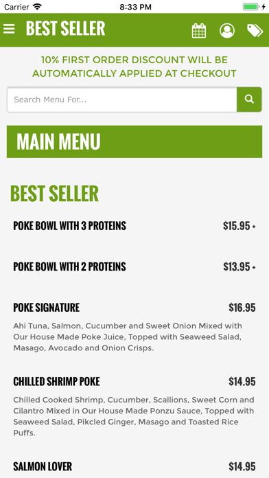 Mobile food ordering application for Poke Green Use our app to place your orders on the go! Key Features : -Ability to create an account -Easy re-order with detailed order history -Ability to save payment info for quick checkout -Exclusive promos and online deals