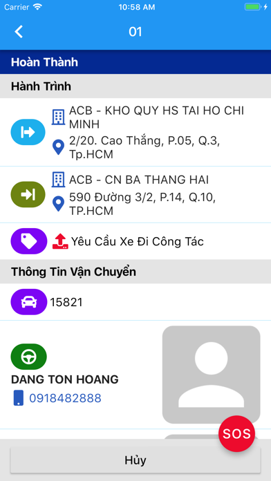 Ứng dụng yêu cầu xe đi công tác giữa các đơn vị chi nhánh trên cả nước.
