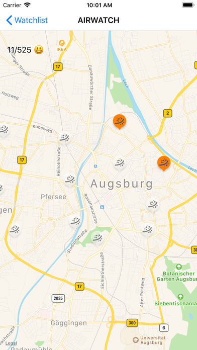 Thousands of data sources on air pollution with hourly updates and push notifications. No login required. Monitor situation on the map directly Tap on a location and add station to your watchlist. You will get notified when that station records dangerous levels. FAQ: https://airwatch.andmed.org/airwatch/faq