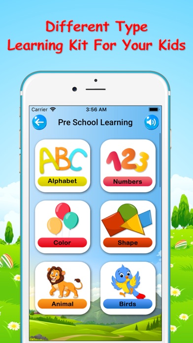 kids game: PreSchool Learning alphabet is the best learning app for kids to learn alphabets, numbers, colors, match and more ! Kids Preschool and kindergarten learning games free, an educational app for pre-k kids and toddlers. Kids Preschool Learning - Kids alphabet, ABC, numbers, color games includes alphabet, numbers, colors, shapes, animal, birds, fruits learning game for kids. Download this all in one preschool learning app for kids. Preschool kids learning app act as trainer teach spellings of Alphabets (letters), Numbers (123), Colors, Animal name, Fruits and Shapes. Kids Numbers flashcards help to learn numbers with counting game. Alphabet flashcards help to learn ABC with kids preschool learning app. Learn colors, shapes and animal name with animal and birds flashcards. Let's enjoy preschool learning games for kids. Install educational games for kids and prepare your child for kindergarten and preschool. This Preschool Kids learning and phonic learning games improve memory skills and a great educational app for toddlers. Learn alphabets, letters, numbers, shapes, colors, days, months with preschool kids ABC learning games. Preschool Kids learning app includes educational games for kids for kindergarten, toddlers and preschool children. Features: - A colorful early education app that helps children learn the English alphabet. PreSchool Learning Kids Alphabet, Number, Color games are also known as - Preschool Learning Kids ABC Preschool Learning Kids Numbers Preschool Kids Learning colors Kids learn the alphabet from ABC to Z Preschool Kids Learning Shapes Kids Preschool Learning Animals ABC Preschool Kids Learning games Preschool Learning Kids flowers Preschool Kids Learning Birds Preschool Learning Kids Months, Days ABC Learning app for Kids Kids Preschool Learning Fruits Nursery Learning Apps Preschool Kids Learning Vegetable