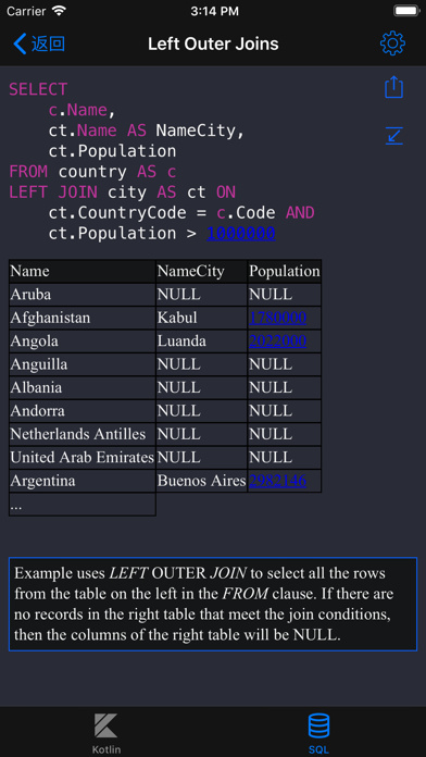 • Kotlin과 SQL에서 자주 사용되는 연산에 대한 참조. • 검색에 최적화된 책과 온라인 리소스의 최상의 코드 예제. • 전문가 개발을 위한 디자인 패턴의 예. • 시험이나 면접 준비 지원. • iOS와 macOS용 앱 하나. • 주제 코드나 이름으로 빠르게 검색. • 모든 예제에 대한 오프라인 액세스. • 짧고 오프라인인 도움말 시스템. 애플리케이션에서 일부 예제는 추가 요금(약 45%)으로 제공됩니다. 애플리케이션을 귀하의 언어로 번역하는 데 도움을 줄 수 있다면 이메일로 저에게 연락하세요.