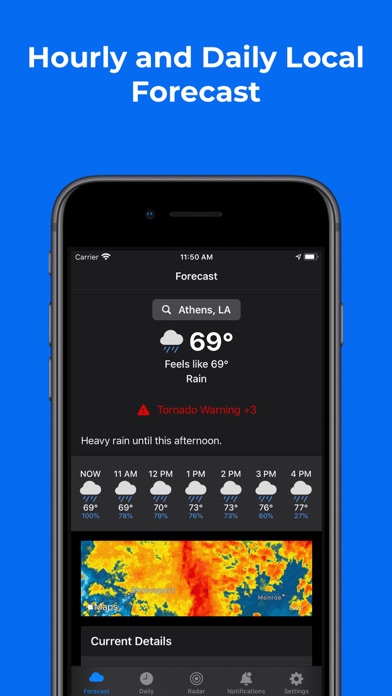 Weather Info Today brings a clean and yet powerful interface that helps you focus on the weather details that matter. All with accurate forecasting. Weather Forecasts and Conditions • Current, hourly, and daily forecast views that allow you to easily see accurate current and future weather conditions. • You can also search for other locations and favorite them to easily view weather in other areas of the world. • Severe alerts (US) are shown within the Home Screen of the app, keeping you aware of current or future weather that may need your attention. Precise location is important in receiving accurate severe weather alerts information and notifications. We strongly recommend enabling location services for this to work appropriately. Don't worry, your location isn't shared with anyone and is only used for notification purposes. • Check air quality conditions and forecasts, located on the Home Screen when available. Weather Widgets • Easily view the current weather and hourly weather on your home screen. • View radar on your home screen with the radar widget. Customize your weather radar widget by pressing and holding on the widget and tapping Edit Widget. You can apply different radar styles, zoom levels, etc. Weather Radar • Full-featured radar with tons of customization features and near-global coverage. • Weather Alerts Layers: add and view weather alerts directly on the radar map provided by the National Weather Service. • Storm Prediction Center Layers: add and view convective outlooks provided by the Storm Prediction Center. Enhanced Notifications • Receive morning notifications with an outlook of the type of weather to expect for the day and/or receive nightly notifications with the weather to expect for the following day. • Severe weather alerts are sent as soon as they are received from the National Weather Service. We hope to add additional coverage in the future. • Note: notifications need to be enabled for the app for these to work. Apple Watch • Severe weather alerts are now also sent to your Apple Watch independently of whether you have your paired phone or not. • See current and future conditions, independent of your iPhone! Have feedback? Send me a message within the app. I'd love to hear your ideas! Love the app? Be sure to rate and review! I want to make your weather experience the best it could and should be. Subscriptions will automatically renew unless canceled within 24-hours before the end of the current period. You can cancel anytime with your iTunes account settings. Any unused portion of a free trial will be forfeited if you purchase a subscription. For more information, see our Terms and Conditions at https://weather-info-today.web.app/terms.html and Privacy Policy at https://weather-info-today.web.app/privacy_policy.html.
