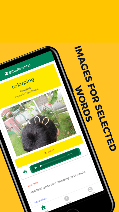 BibePortMal is a Malacca Portuguese-English dictionary with almost 3000 entries to help you learn and use Malacca Portuguese. Developed in collaboration with actual speakers of Malacca Portuguese in Malacca, the heartland of this language, this dictionary has features such as: • the ability to search for words in either Malacca Portuguese or English. • audio recordings of entries by Malacca Portuguese speakers. • example sentences in Malacca Portuguese. • English translations of example sentences. • a new word of the day to each time you use the app to help you increase your vocabulary. The spelling conventions in BibePortMal are based on Singho et al. (2016) but alternative spellings are also provided. The dictionary will be updated with new entries.