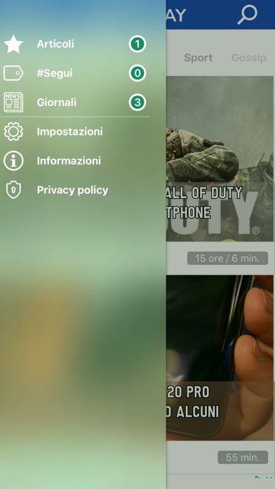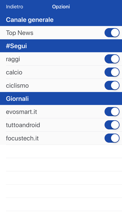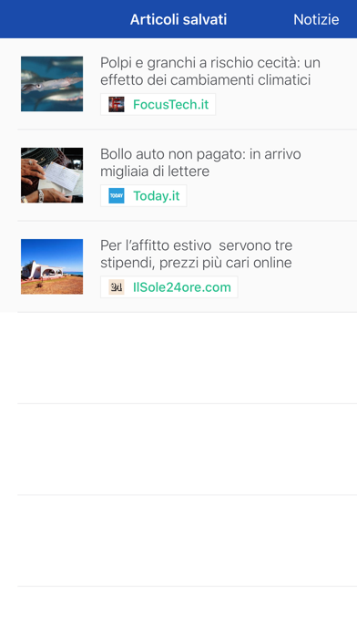 Non vuoi perderti nessuna news? Naviga tra le tantissime categorie: TopNews, Mondo, Tecnologia, Sport, Gossip, Scienza, Politica, Cronaca, Economia, Cinema, Salute, Giochi, Gastronomia e tantissime altre! Scarica gli articoli per leggerli tranquillamente quando non avrai connessione internet, in metro o al lavoro. Decidi di ricevere via push tutte le notizie dei giornali che più ti interessano. Ricerca nel nostro immenso catalogo un articolo, o un trend-topic, o una qualsiasi parola chiave, scegli di ricevere tutti gli aggiornamenti via push! Proponi una testata che vorresti trovare nell'App, vai nella sezione 'informazioni' e clicca sul tasto in alto a destra. Non seguire il gregge, non farti abbindolare dalle fake news che girano sui social, scegli di seguire solo le notizie certificate dalle maggiori testate italiane e straniere!