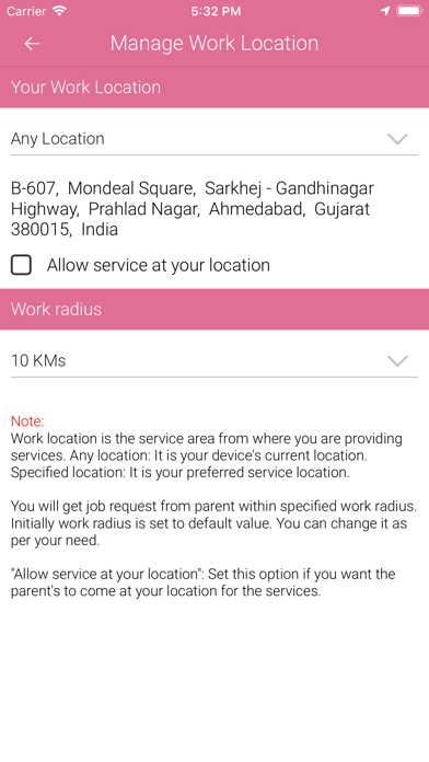 Application for Baby Sitting Service Providers, which let them manage the on demand Baby Sitting service request for now or later time. Work Flow: 1) Choose the appropriate services that you are going to provide 2) Becomes online/on duty to accepts the job/service request 3) Accepts the request and go to user's location 4) Start the job once reached to user's location 5) End the job once job is completed 6) Invoice/Receipt generated 7) Rate the User and complete the job