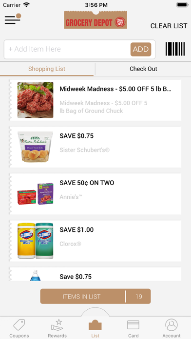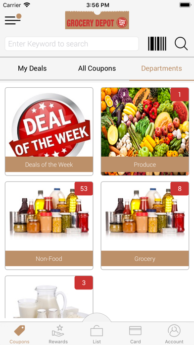 The Grocery Depot MS app is the best way for our loyal shoppers to receive savings every time they come in to the store! It's as simple 1, 2, 3: 1. Download the app. 2. Adding coupons and specials to your list, and 3. Presenting loyalty card to cashier to scan at check out. Claim as many coupons as you want with one simple scan! No more searching through mailers or printing out emails, Grocery Depot MS is bringing rewards right to your mobile device!