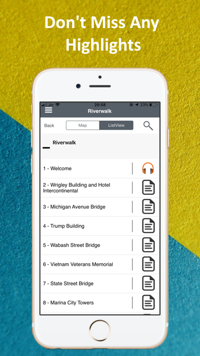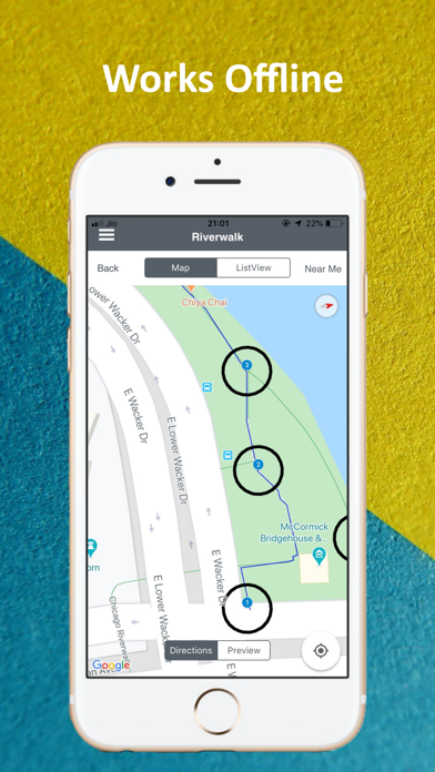 Welcome to GPS-enabled offline walking tour of Chicago’s scenic Riverwalk! Are you ready to turn your phone into a personal tour guide? This app offers a fully-guided experience - just like a local giving you a personalized, turn-by-turn, fully-guided tour. ■ Chicago Riverwalk: Embark on an adventure along Chicago’s Riverwalk, a 1.5 mile-long open, pedestrian waterfront located on the south bank of the Chicago River. Discover thrilling tales of blimps, battles, and betrayals from Chicago’s past. Explore the colorful stories behind the stunning waterfront architecture including Trump Tower, the Wrigley Building, and Merchandise Mart. This self-guided walking tour of Riverwalk includes the following popular stops ■ Welcome to Riverwalk ■ Wrigley Building & Hotel Intercontinental ■ Du Sable (Michigan Ave) Bridge ■ Trump Building ■ Wabash Street Bridge ■ Vietnam Veterans Memorial ■ State Street Bridge ■ Marina City Towers ■ Dearborn Street Bridge ■ Eastland Disaster ■ Reid Murdoch Building ■ Chicago River Reversal ■ Merchandise Mart ■ Wolf Point ■ McCormick Bridgehouse and Museum ■ Tribune Tower ■ Columbus Drive Bridge ■ NBC Tower ■ Lake Michigan’s Locks NEW TOURS AVAILABLE! ■ Chicago Bean Walking Tour (Millennium Park): See the most famous attraction in Chicago: the Bean! Learn all about this unique sculpture, it’s quirky artist, and one-of-a-kind construction. Plus, explore Millennium Park, Chicago’s greenest space! The park is home to the modern Lurie Gardens, Frank Gehry-designed Pritzker Pavilion, and avant-garde art installations. APP FEATURES: ■ Plays automatically The app knows where you are and which direction you are heading, and plays audio automatically about the things you are seeing, plus stories and tips and advice. Simply follow the GPS map & the routing line. ■ Fascinating stories Be immersed in an engaging, accurate, and entertaining story about each point of interest. The stories are professionally narrated and prepared by local guides. Most stops also have additional stories that you can optionally choose to hear. ■ Works offline No data, cellular or even wireless network connection needed while taking the tour. Download over Wi-Fi/Data Network before your tour. ■ Freedom of travel No scheduled tour timings, no crowded groups, and no rush to move along past stops that interest you. You have total freedom to skip ahead, linger, and take as many photos as you’d like. ■ Award-winning platform The app developers received the famous “Laurel Award” from the Newport Mansions, who use it for over a million tours/year. FREE DEMO vs FULL ACCESS: Check out the totally free demo to get an idea of what this tour is all about. If you like it, purchase the tour to get full access to all of the stories. QUICK TIPS: ■ Download ahead of time, over data or WiFi. ■ Be sure the phone battery is fully charged, or take an external battery pack. Just download the app and get started! NOTE: Continued use of GPS running in the background can dramatically decrease battery life. This app uses your location service and GPS tracking feature to allow real-time tracking of your route.