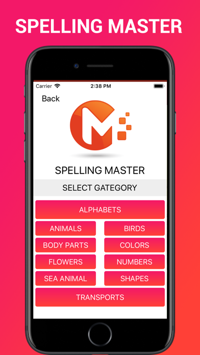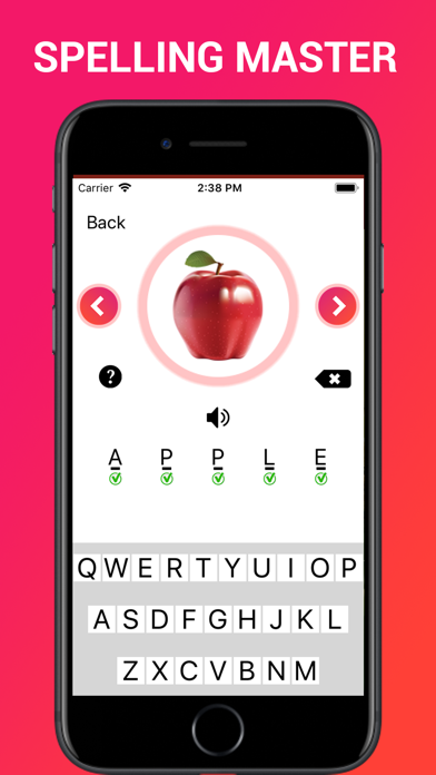 Spelling Master is for Kids, Young as well for elders to learn common spellings and vocabulary. Lean spellings with picture. If kids enter wrong spelling it will display it in red . you can remove wrong spelling by enter back button. Tap on Sound Icon to hear the name and learn pronunciation. Welcome to a Spelling Master, a new educational game type application for all ages that will improve your English spelling skills in an entertaining and challenging way! Spelling master and spelling learner app is 100% free and have multiple category including Animals, Birds, Alphabets, colors etc. Spelling Master has auto spelling suggestion by alphabets. if you have problem with next alphabets, click on help button and it will suggest you next alphabet.