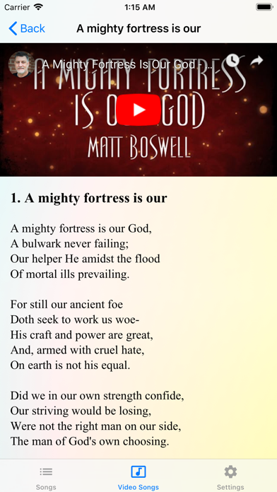 English Christian Songs application is a collection of Christian Song lyrics. This app helps you to carry the English christian songbook in your pocket. It includes around 1000+ songs. If you have any specific songs to be added or have songs in soft copy please contact the me. God Bless you all. Share your comments and suggestions to improve this application. Features: - Stunningly beautiful graphics - Intuitive and easy-to-use interface - Plenty of themes - Favorites - Slide Show option - iPad Support - Remote Slideshow - Video Songs added - Recent Songs - Song search made easy - Ads can be removed by the one time purchase - Song scale, beat and tempo for some songs - Export any song as PPT - Export any song as PDF - And many more tweaks inside the app