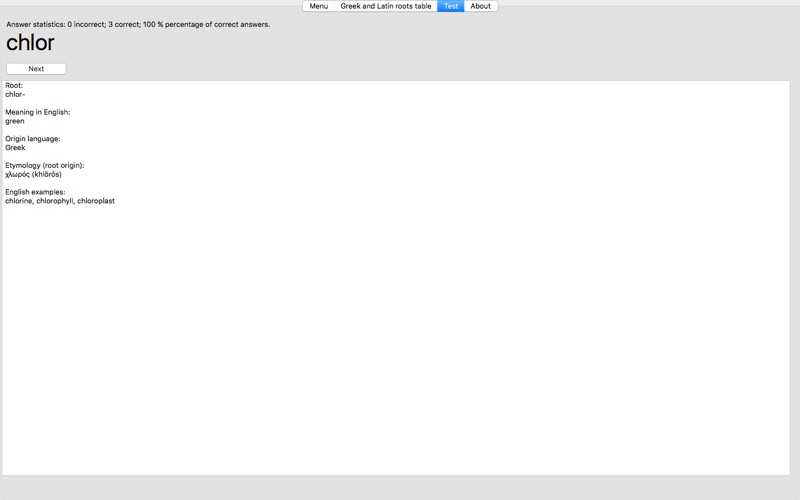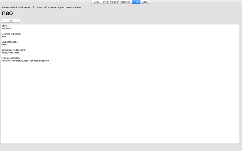 당신은 Greek and Latin roots finder 상. 그것을 클릭하고 응용 프로그램 사용을 시작하십시오.