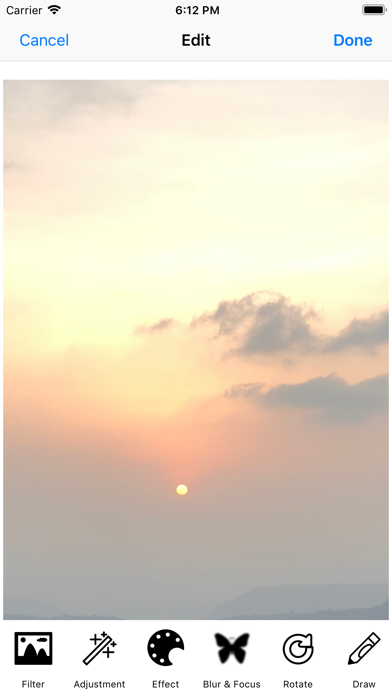 This App is for Edit image and crop image. For edit image there were many options for image editing like Filter, Adjustment, Effects, Blur & Focus Rotate image, Draw on image, Crop Image, Round Cropping on image, Tone Curve. Then after you can share image also. and reset Image to original selected image.