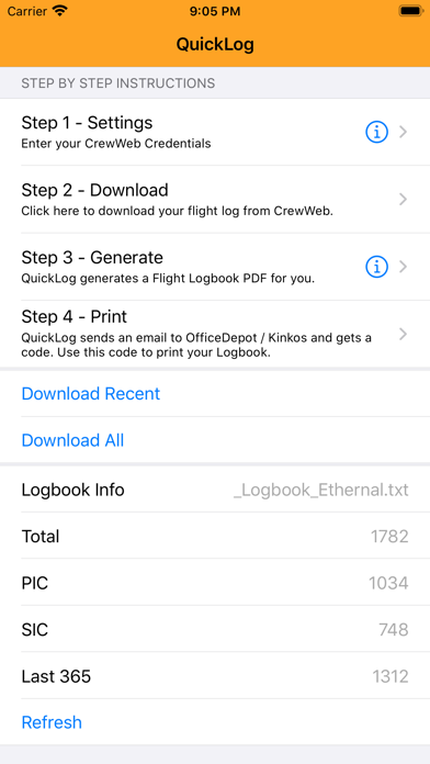 This app downloads your flight time from CrewWeb website and instantly computed your totals. You can then email it to OfficeDepot, Kinkos, or yourself to print out.