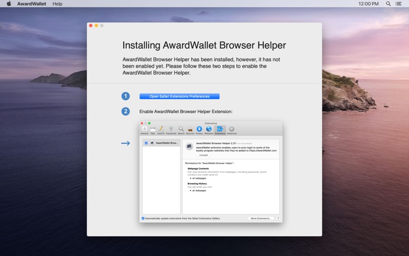 AwardWallet is a Safari App Extension that enables users to auto-login to some of the loyalty program websites that they've added to https://AwardWallet.com