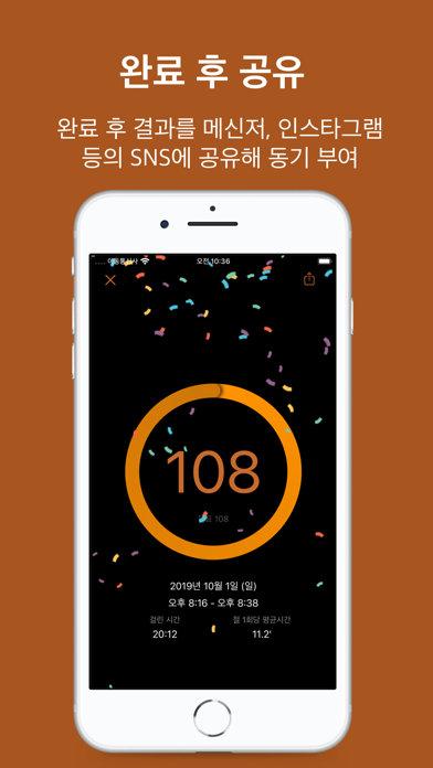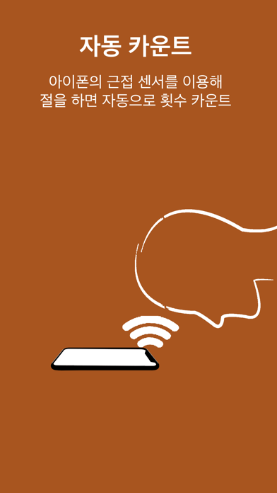 108배는 iPhone의 근접센서로 자동으로 절 동작을 인식하고 음성으로 횟수를 세주고 기록해주는 앱입니다. 자동으로 절을 인식해서 말로 세주는 108배 수행 앱입니다. (아이폰 프로이상에서 근접센서가 잘 동작하지 않을 경우 화면을 터치해서 카운트할 수 있습니다) ◉ 이런 분께 좋습니다. 108배 다이어트, 108배 절 운동, 108배 수행하시는 분 ◉ 절 할 때 숫자를 세지 않아도 됩니다 아이폰의 근접 센서로 자동으로 절을 인식해서 횟수를 세줍니다. ◉ 음성 가이드 절 할때 마다 횟수를 음성을 세줍니다. ◉ 환경음 절 하는 중에 집중할 수 있게 풍경 소리를 들을 수 있습니다. ◉ 수행문, 기도문 낭독 절 하는 동안 수행문 또는 기도문을 들을 수 있습니다. 수행문/기도문: 행복을 찾는 108가지 마음, 백팔대참회문, 삼천불명경 ◉ 완료 후 결과 보기 완료 후 절 횟수, 경과 시간, 1회당 평균 시간, 소비 칼로리등의 결과를 바로 확인할 수 있습니다. ◉ 결과를 메신저나 SNS로 공유 인스타그램 크기에 맞는 이미지로 친구에게 공유하고 동기부여를 받을 수있습니다. ◉ 수동 입력 앱으로 카운트하지 않은 경우에도 수동으로 날짜와 횟수를 기록 할 수 있습니다. ◉ 메모 기록 절운동에 대해 메모를 남길 수 있어 수련 일지 또는 절운동 일지를 작성 할 수 있습니다. 절운동을 하지 않는 날에도 있어 안한 날에 대한 메모를 기록할 수 있습니다. ◉ 절운동 캘린더 보기 달력에서 운동한 날을 한 눈에 확인 할 수 있습니다. 수련 캘린더 또는 운동 캘린더로 활용할 수 있습니다. ◉ 통계 보기 운동한 날 수 , 총 절 횟수, 시간 등의 통계를 확인할 수있고, 일별로 절 횟수를 막대 그래프로 확인할 수 있습니다. ◉ 애플 건강 연동 시간, 소비칼로리, 횟수 등을 애플 헬스킷을 이용해 애플 건강에 저장합니다. ◉ 다크모드 지원 iOS 13 이상인 경우 다크모드를 지원합니다. 눈의 부담과 배터리 소모를 줄일 수 있습니다. 화면 스타일을 라이트모드, 다크모드, 기기에 따른 자동 변경을 설정 할 수 있습니다. ◉ 1:1 문의 사용중 불편한 점이나 아이디어는 언제든지 앱에서 설정 > 앱 정보 > 제안하기를 통해 보내주시면 성심껏 답변 드리겠습니다. 이용약관: http://waneelab.com/ko/terms/