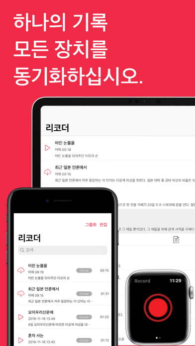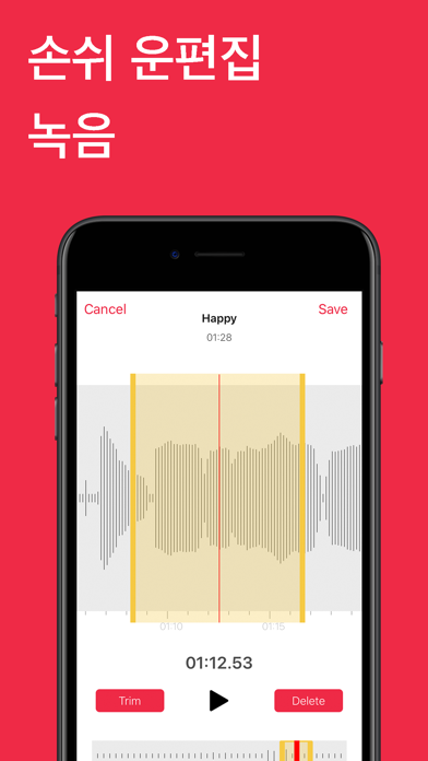 녹음기는 고음질의 음성 녹음을 위한 최고의 솔루션입니다. 녹음기는 는 녹취 및 모든 장치로 iCloud 동기화가 가능한 최고의 모바일 오디오 녹음기입니다. 앱에서 바로 오디오와 녹취록을 편집할 수 있으며, 심지어 Siri를 사용해서 완전히 핸즈프리로 새로운 녹음을 시작할 수도 있습니다!또한 재생 기능과 트리밍, 복사/잘라내기/붙여넣기, 분할, 합치기, 삽입 및 믹스와 같은 더 많은 편집 기능을 제공하여 인터뷰, 말, 강연, 회의, 영감을 주는 말을 쉽게 녹음할 수 있습니다. 기능 「녹음」 - Siri 단축어를 사용해서 새로운 녹음 시작. - 한 번 탭해서 녹음 시작, 중지, 일시 중지 및 재개. - Apple Watch에서 독립적으로 녹음하고 나중에 동기화. - 음성을 검색 가능한 텍스트로 변환. - 장치의 언어 설정과 상관 없이 30개 이상의 언어 지원. - 약속 시간에 녹음 시작. - 자동 일시 중지 감지. - 배경 음악. - 음성을 검색 가능한 텍스트로 변환. - 장치의 언어 설정과 상관 없이 30개 이상의 언어 지원. 「편집」 - 편집 시 더욱 정확하게 손가락을 모으거나 펼쳐서 확대하고 축소할 수 있습니다. - 원하는 부분만 저장하도록 녹음 파일을 다듬을 수 있습니다. - 대치 및 재개를 통해 녹음 파일을 정확하게 편집할 수 있습니다. - 마커 - 마커를 사용하여 특정 오디오 위치를 빠르게 선택할 수 있습니다. - 텍스트 - 녹취록 정정 및 새로운 텍스트 추가. - 배경 음악 추가 「공유」 - AirDrop, Mail, 메시지 등을 통해 녹음 파일을 공유할 수 있습니다. - iCloud에서 녹음 및 편집 내용을 모든 기기에서 동기화 상태로 유지하는 기능을 지원합니다. 「APPLE WATCH」 녹음기는 Apple Watch 앱을 포함하고 있어서 iPhone이 곁에 없을 때에도 어디에서든 자유롭게 녹음할 수 있습니다. ========================== Voice Recorder Pro Unlimited Subscription ========================== - Join Voice Recorder Pro Unlimited use all features for free, Unlimited use of all features, Mute auto pause, Start recording at the scheduled time, Use Background Music, Shortcuts, no ads, no watermarks, etc.. - Voice Recorder Unlimited subscription is billed monthly or annually at the rate correspnding to the selected plan. In addition, a one-time payment will be offered if needed, which is not one of the subscription plan. - Payment will be charged to Itunes Account at confirmation of purchase. - Subscriptions automatically renews unless auto-renew is turned off at least 24 hours before the end of the current period. - Account will be charged for renewal within 24-hours prior to the end of the current period, and identify the cost of the renewal. - Subscriptions may be managed by the user and auto-renewal may be turned off by going to the user's Account Settings after purchase. - Any unused portion of a free trial period, if offered, will be forfeited when the user purchases a subscription to that publication, where applicable. - Terms of use : https://vl2d7p74tu.feishu.cn/docx/Ma7xdszymo8gpDxBJbGcV0YCnab - Privacy policy: https://vl2d7p74tu.feishu.cn/docx/HcHHdXlnvoV6sOxKl4ccErZYnr4 Feel free to contact us: [email protected] Your problems or suggestions are important to us!
