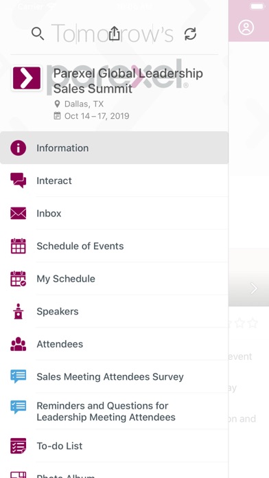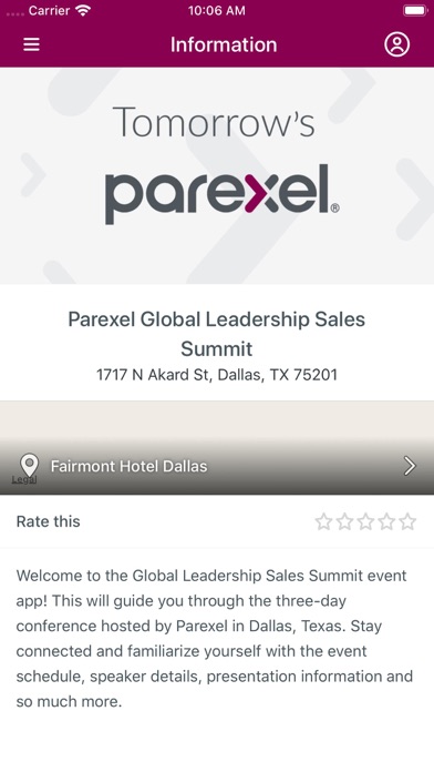 Welcome to the Global Leadership Sales Summit event app! This will guide you through the three-day conference hosted by Parexel in Dallas, Texas. Stay connected and familiarize yourself with the event schedule, speaker details, presentation information, and so much more.
